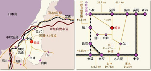 ◆名古屋方面より白山スーパー林道(中宮料金所)を通り鶴来駅へ(所要時間50分)※冬季閉鎖