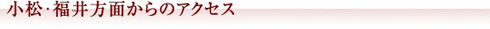 ◆小松空港より(連絡バス)JR小松駅へ⇒JR小松駅よりJR西金沢駅へ⇒隣接する新西金沢駅(北陸鉄道石川線)より鶴来駅へ(所要時間50分)